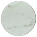 This modern round end table combines durability and elegance with its tempered glass top featuring a marble-patterned print. Supported by a sturdy four-legged metal frame, its minimalist design adds sophistication to any room. Perfect for use as an accent table in living rooms, bedrooms, or offices, it blends functionality and style effortlessly while offering a durable surface for daily use.