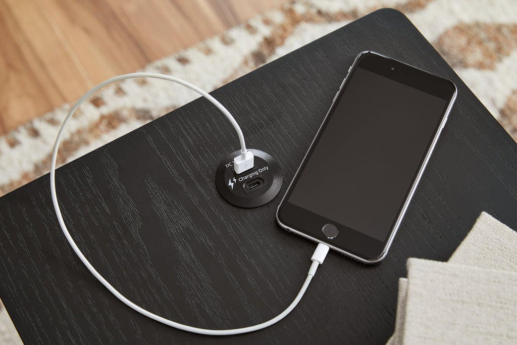 This chairside end table elevates your living room with both sleek style and must-have modern function. Reeded detailing lends a contemporary appeal, while subtly integrated drawers stow essentials with ease. USB ports round out the design, allowing you to keep devices within reach while charging.