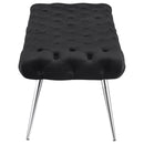 Enhance your living area, bedroom, or entryway with this sophisticated bench, skillfully blending timeless tufting and plush upholstery for a luxurious look and feel. Its meticulous button-tufted top adds depth and dimension, while slender metal legs provide stable support and a touch of modern refinement. Designed to complement various interiors, this versatile piece can function as extra seating, a footrest, or a decorative accent, effortlessly elevating your home’s ambiance.
