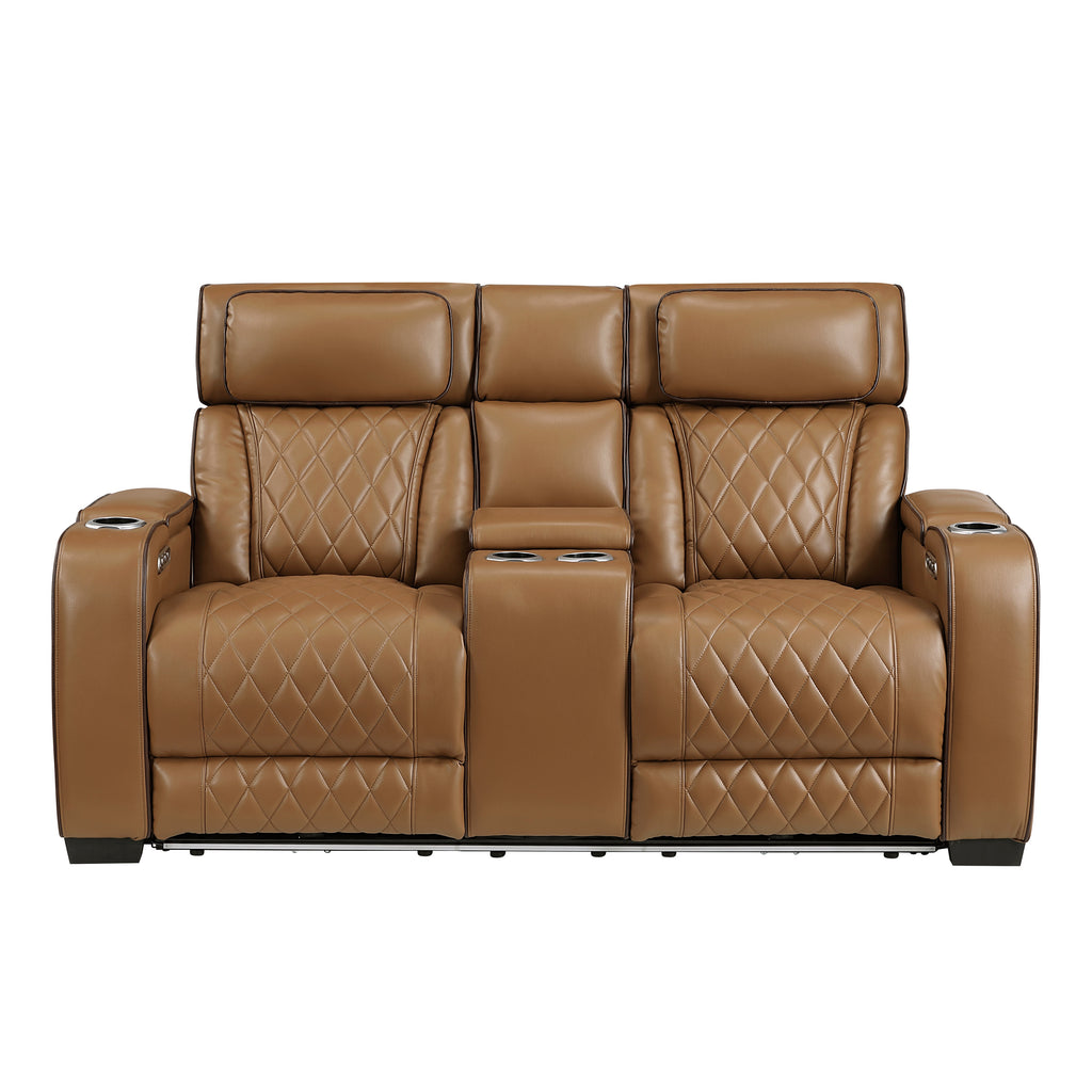 Experience unparalleled comfort and convenience with this black faux leather power double reclining loveseat. This luxurious loveseat is designed for ultimate relaxation with features like independent power reclining, adjustable power headrests, and ambient LED lighting. The center console provides storage and cup holders for added convenience, while built-in USB ports keep your devices charged. Top and side storage arms offer additional storage space for remotes or other essentials. The sleek black faux leather upholstery with diamond-stitched detailing adds a touch of modern sophistication, making this loveseat a perfect centerpiece for your home theater or living room.