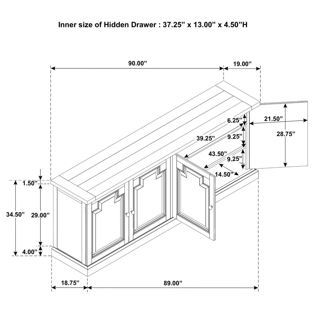 This four-door sideboard offers a refined blend of storage and style, perfect for dining and entertaining spaces. Crafted from pine, plywood, and pine veneer, it features a beautifully planked top that enhances its rustic charm. Raised panel doors lend a classic, sophisticated appeal, while the spacious interior includes two nested drawers with self-closing metal slides for effortless organization. This versatile piece functions beautifully as a server, providing ample space for dishware and linens. With its elegant craftsmanship, it also serves as a buffet, adding both convenience and timeless appeal to any home. Key Features: • Four-door sideboard with raised panel doors for a classic, textured look • Pine, plywood, and pine veneer construction ensures lasting durability • Planked top highlights the natural grain with a rustic honey finish • Spacious interior storage includes two nested drawers for organization • Self-closing metal slides ensure smooth and effortless drawer operation • Warm rustic honey tone enhances farmhouse and traditional decor