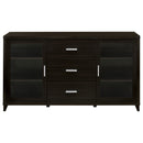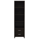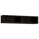 Overhaul your living space with this cappuccino entertainment wall. This wall is constructed with four pieces, including one TV console, two media towers and one bridge. A total of 16 shelving units are available to store your media and decor. Meanwhile, five concealed drawers enhance the organization of your living space. This transitional entertainment wall is suitable for all styles of living spaces with its clean and modern design.
