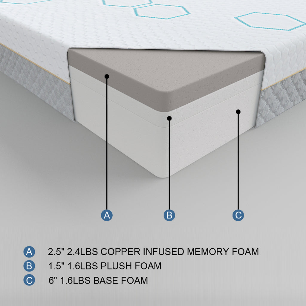 Lyra 10" Copper-infused Memory Foam Mattress Display Cube
