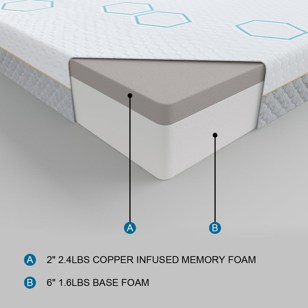 Lyra 8" Copper-infused Memory Foam Mattress Display Cube