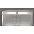 Out with the old and in with the new, this silver finished set is unlike any other! With 3mm mirrored panel accents, this set is an elegant choice for a glamorous setting. Each piece is adorned with geometric style wooden trim that emphasizes the champagne backdrop. Matching case goods are adorned with crystal-like acrylic drawer pull handles, felt-lined top drawers and full extension metal glides.