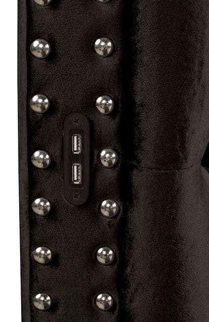There's something special about a round bed, and this piece certainly exudes that air of glamour. It is upholstered in velvet-like fabric and tufted all around with acrylic crystals. The stylish wingback headboard with nailheads curls up top into a chesterfield-inspired design. Then there's the USB port present on each side of the headboard to keep your electronics charged up. Just imagine yourself opening a door and being greeted by this sultry--and surprisingly tech-forward--masterpiece.