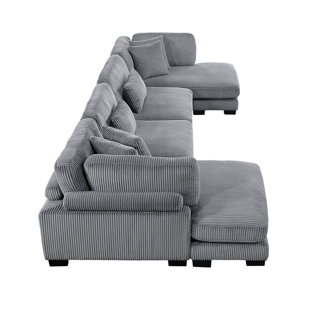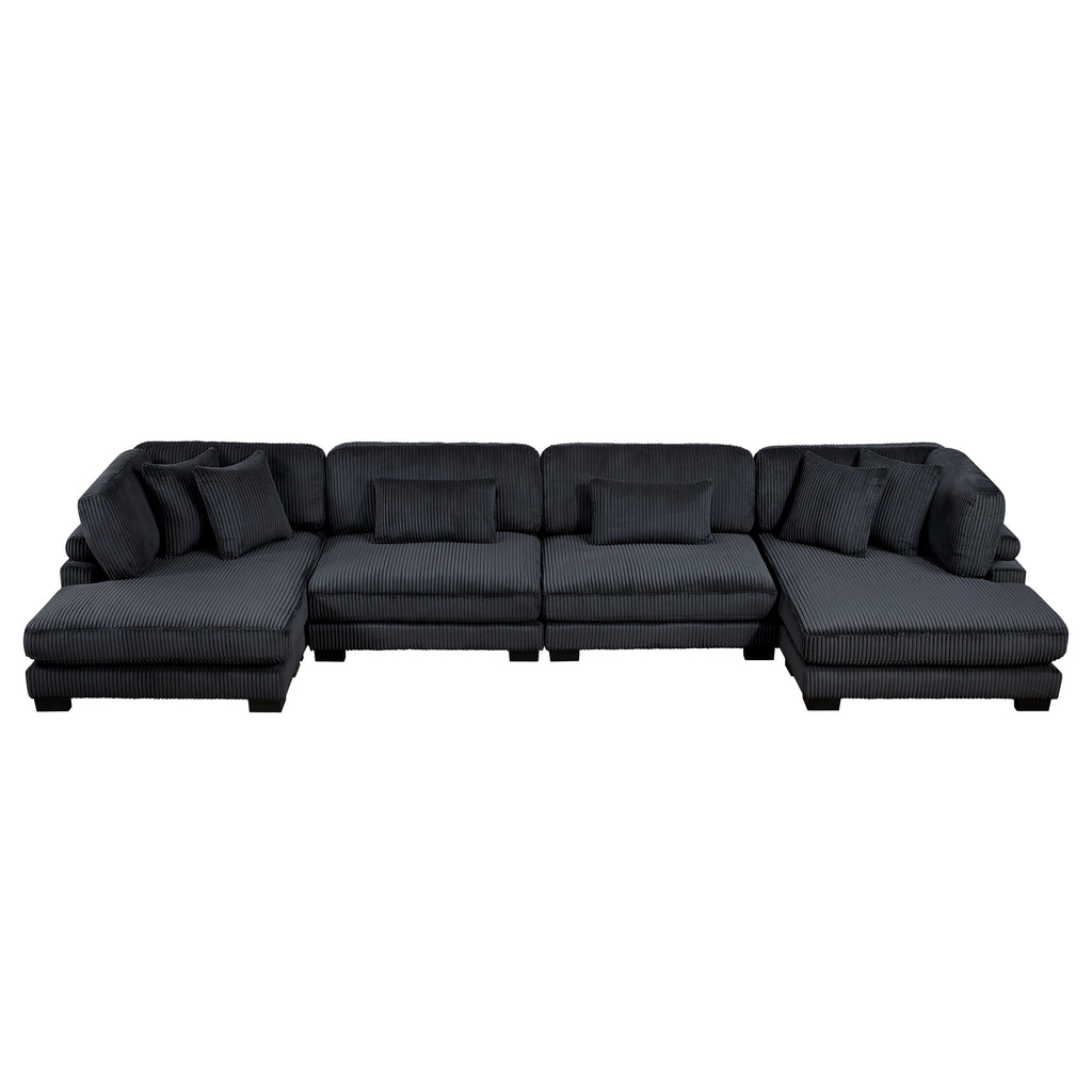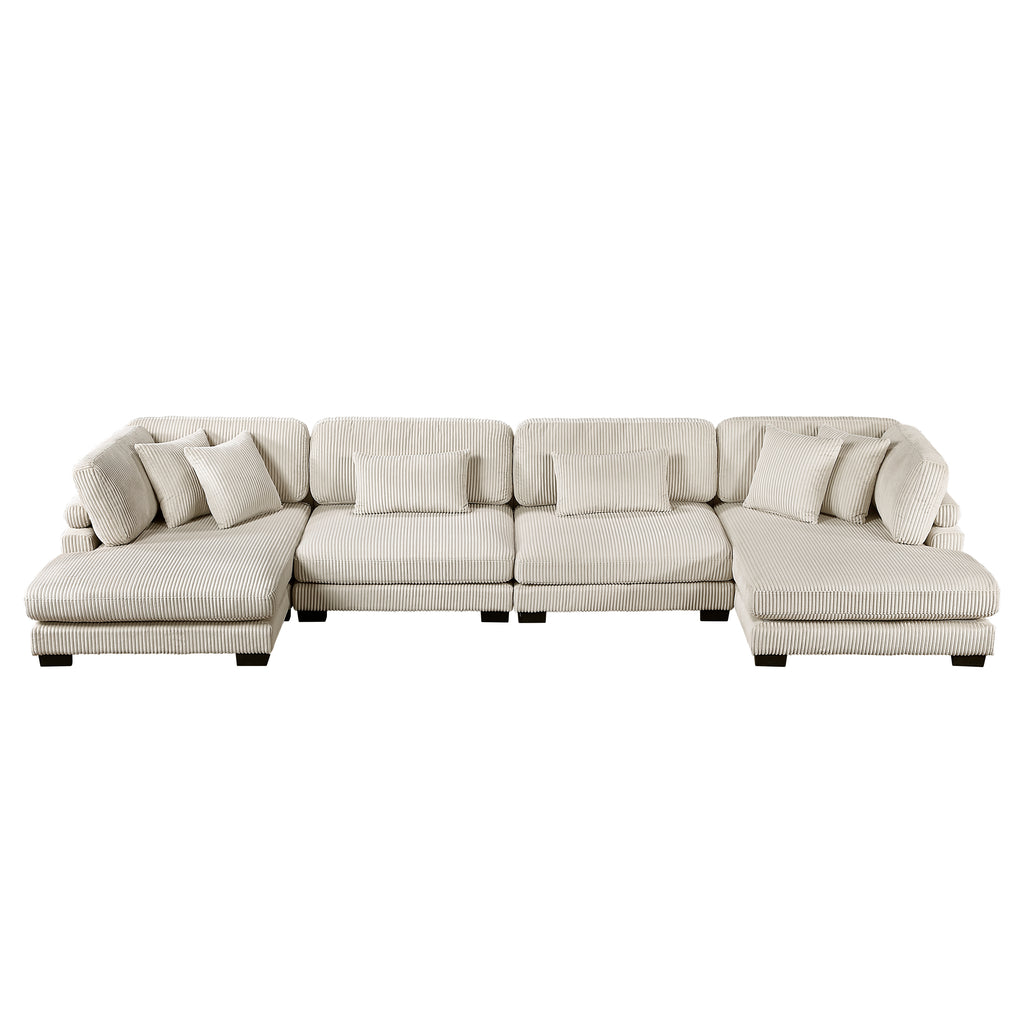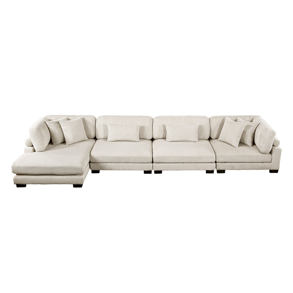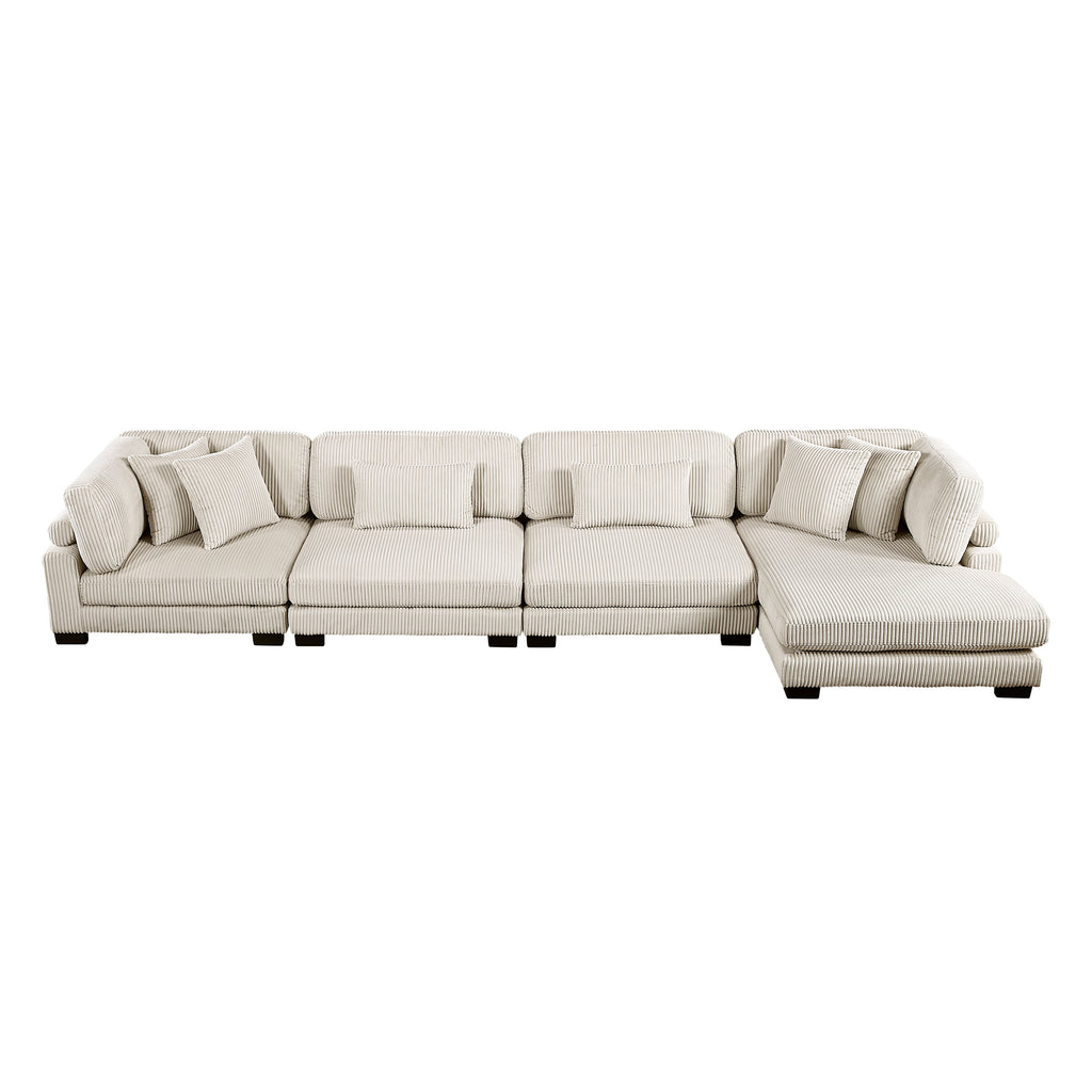 Configurable to your available space, the Traverse Collection allows for the addition and detachment of pieces for a customized seating experience. The 4-piece sectional configuration consists of two armless chairs with two chaises. The beige corduroy fabric upholstery creates a plush expanse for a soft touch experience.